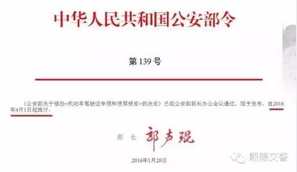2016年4月1日起,新修定的《驾驶证领取和应用要求》(国家公安部139命令)将宣布实施。