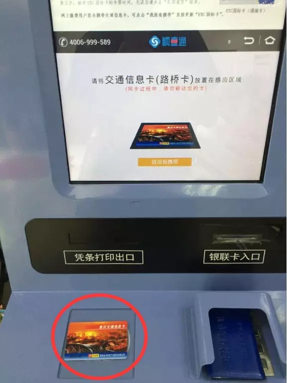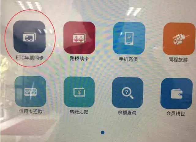 点一下自助终端机显示屏左上方第一个标志【ETC年卡同歩】,依照屏幕提示将交通信息卡置放在磁感应地区内,等候载入年卡信息内容取得成功。